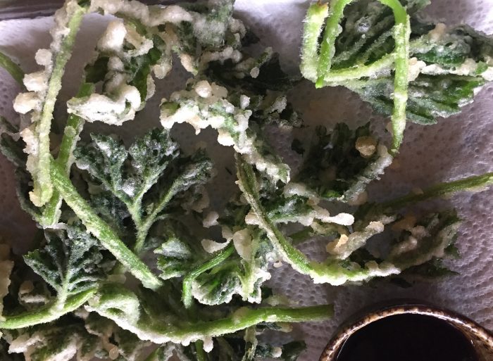 The unopened flower buds are also delicious and come in their own wee packages which means you can steam them without losing any of their sensational flavour – a glamourous steamed accompaniment to fish. Add them peeled to stir-fries, deep fry in tempura batter or to pickles. Older leaves are not so appealing, but make an excellent addition to a stock pot.