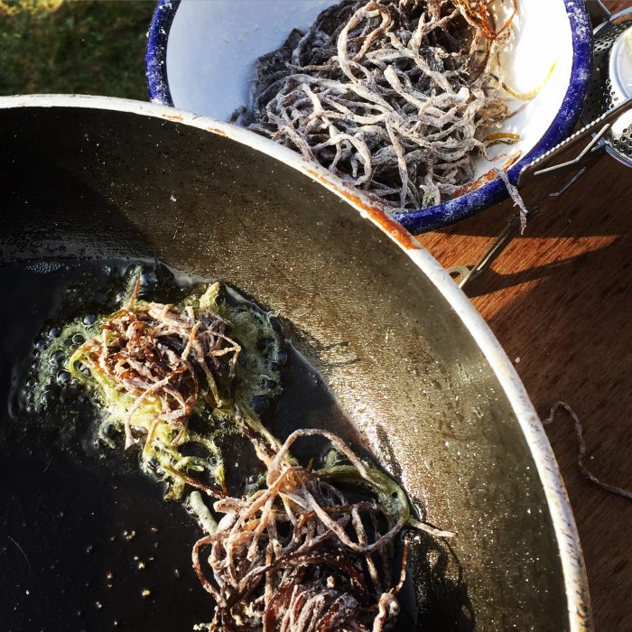 Edible Uses: Tasty and tender raw, straight from the sea, in salads, sushi etc. Toss them in soups, stews and broths at the last second as instant noodles. I dry them in nests and use them as the base of my instant wild “pot noodles”. They are quite fragile, so break down quickly with extended cooking – drop them in at the last minute. Dust a plateful with flour then scrunch into “knots” before frying hot and quick, or tempura batter and deep fry. Either way, they make wonderful salty beer snacks! Dried and crumbled they make excellent seasoning.