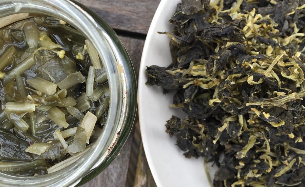 I describe my method as “dry” fermentation because, for the most part, I add no liquid – the plant matter ferments entirely in its own juices. “Wet” fermentation follows a similar process, but the plants are added to a brine. I prefer dry fermentation where possible as their is no dilution, only enhancement, of flavour.